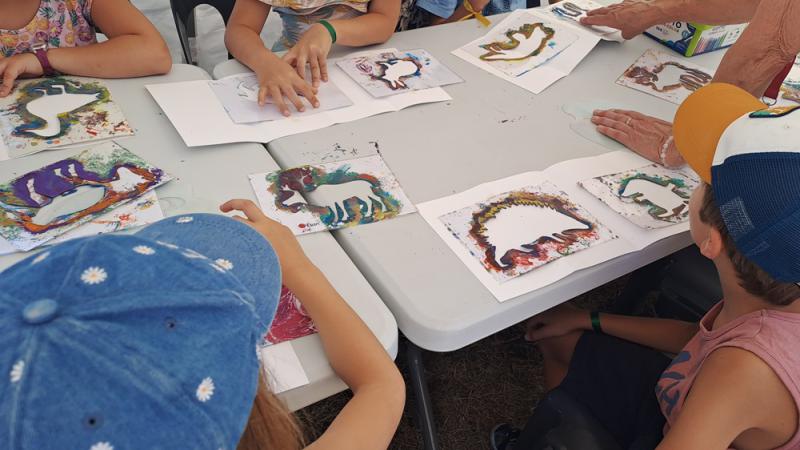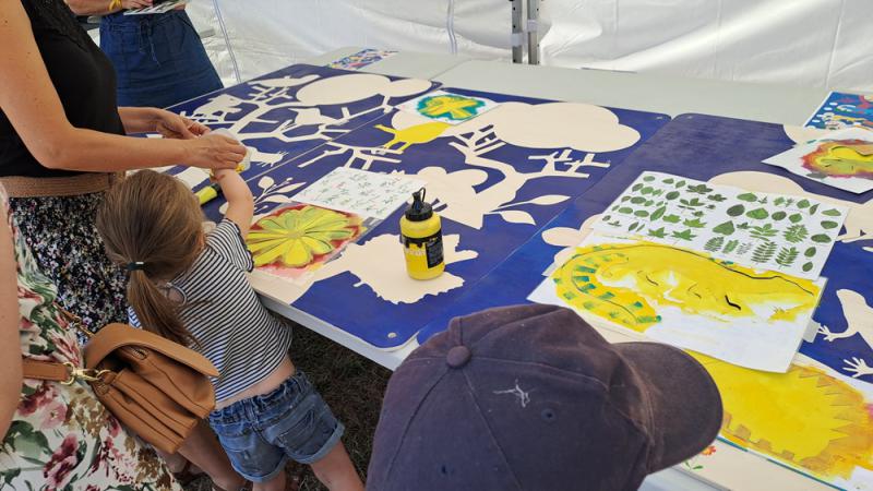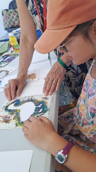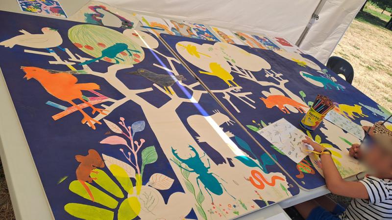 - Une superbe Fresque géante a été réalisée, à la fois par les enfants de l'atelier d'Emmanuelle et le public qui était invité à ajouter de façon libre, insectes, feuilles et fleurs au feutre ?