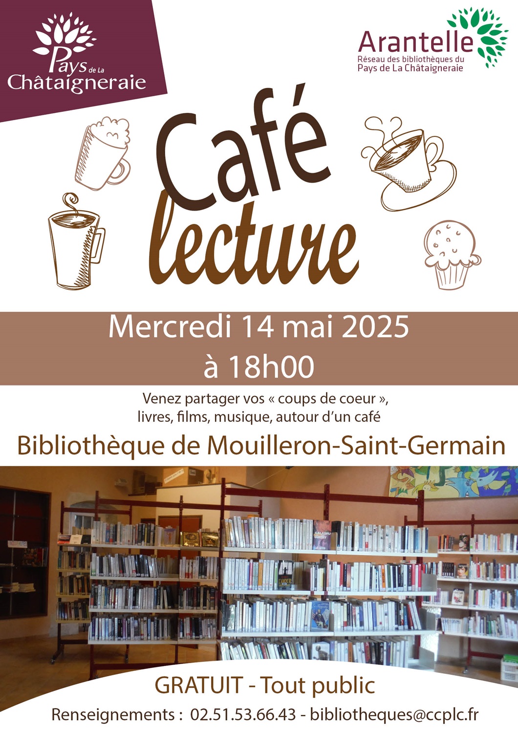 Café lecture à la bibliothèque de Mouilleron Saint Germain le 14 mai à 18h