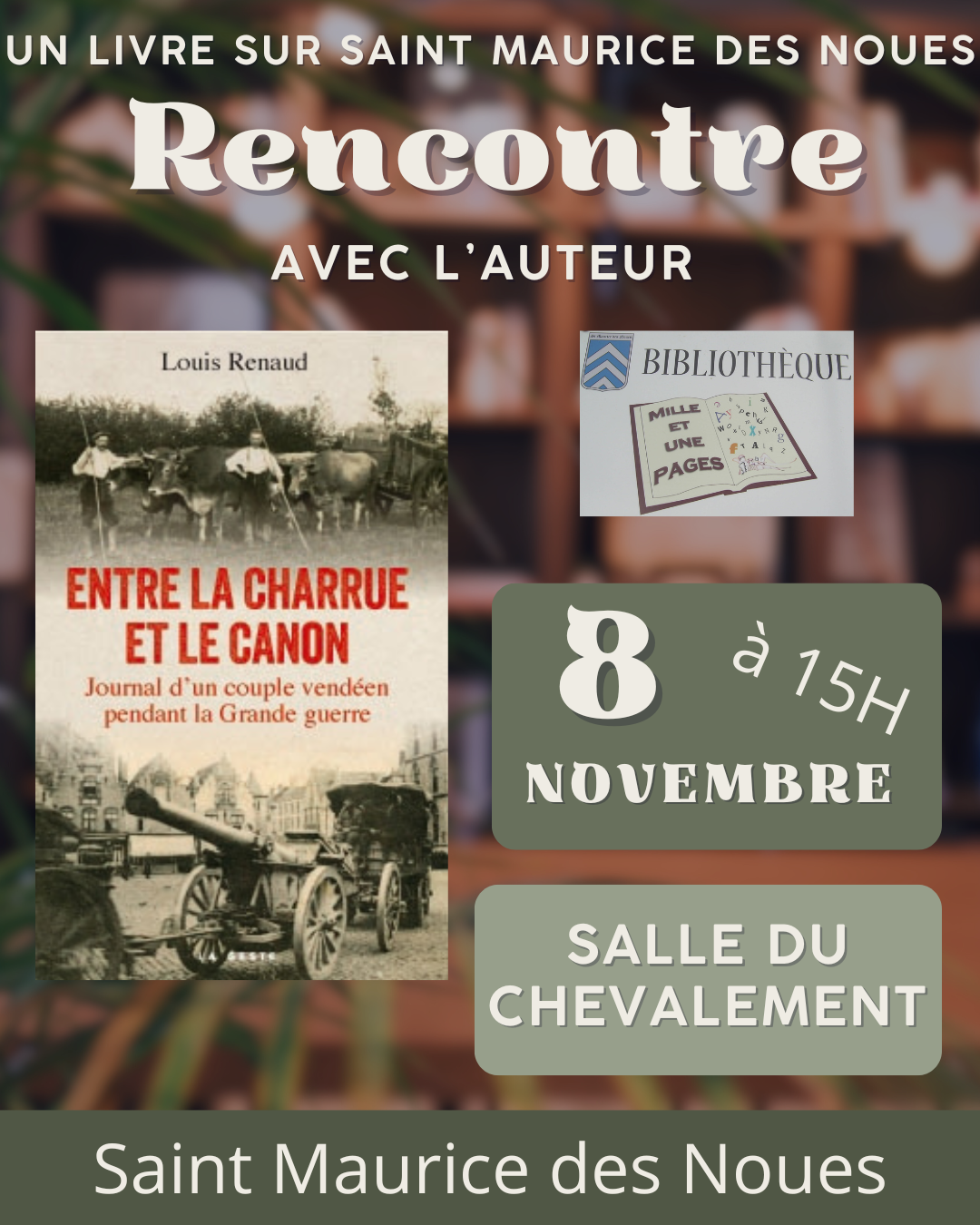 Rencontre avec l'auteur Louis Renaud, à Saint Maurice des Noues Afficher les options de partage × Partager Détails des prochaines sessions Le samedi 08 novembre 2025 de 15:00 à 16:30 Lieu Saint Maurice-des-Noues Condition d'accès Salle du chevalement, entrée libre Public Tout-public
