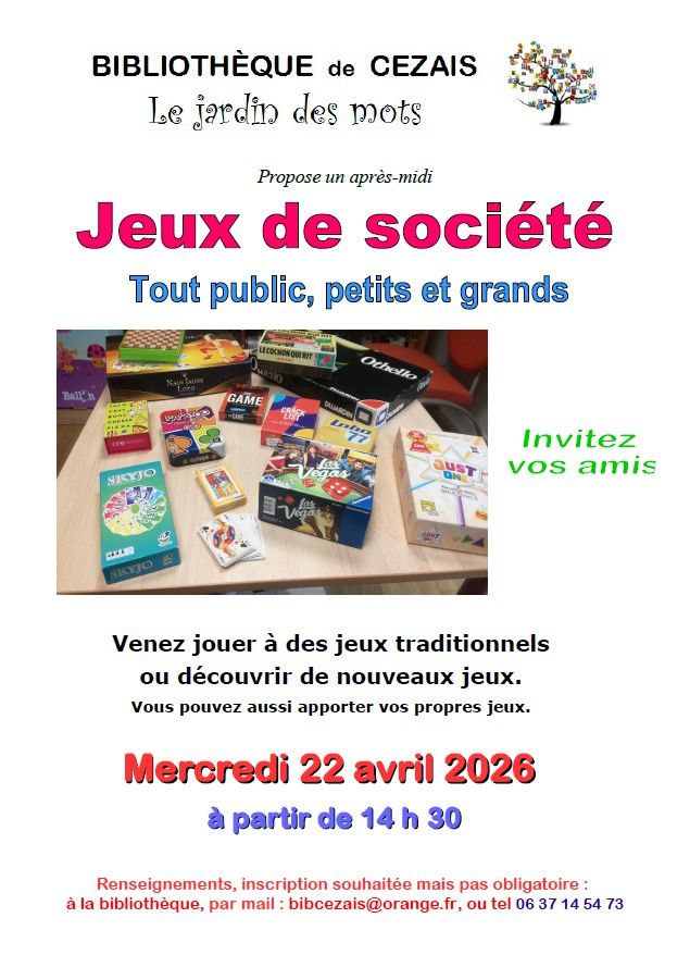 Après-midi jeux de société à Cezais, pour petits et grands !