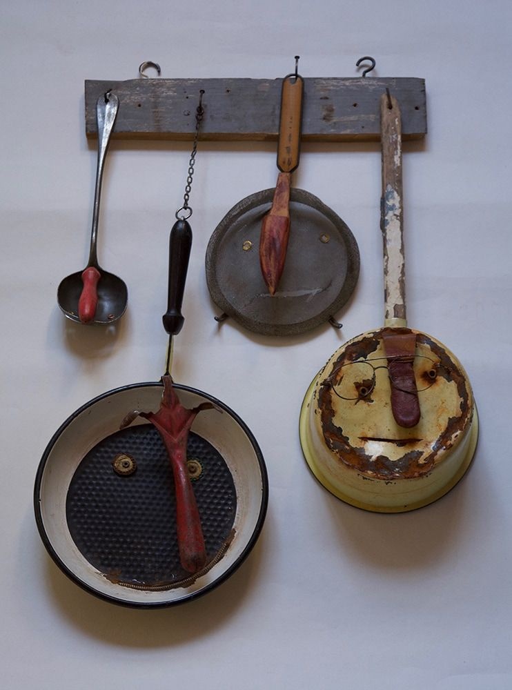 Objets de tout poil, ferraille rouillée, bois poli, cuir pâtiné… Autantde p’tits trucs hors d’usage, tout juste bon à être mis à la poubelle etdont se sert