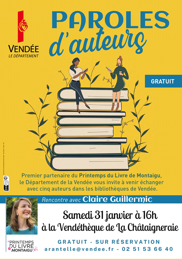 Dans le cadre des rencontres « Paroles d’auteurs », le Département de La Vendée vous invite à venir rencontrer Claire Guillermic, autrice-chercheuse, guide conférencière, à la Vendéthèque de La Châtaigneraie.