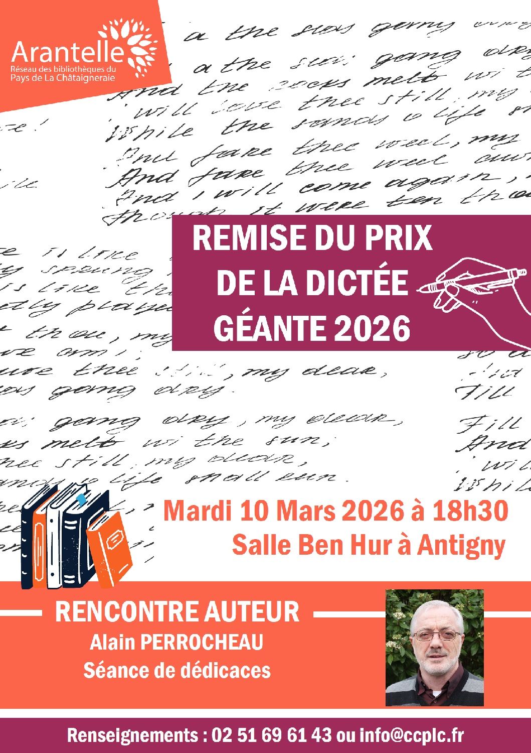 A cette occasion, l'auteur du texte inédit de cette dictée, Alain Perrocheau, nous fera l'honneur de sa présence. Rencontre, échanges et dédicaces.