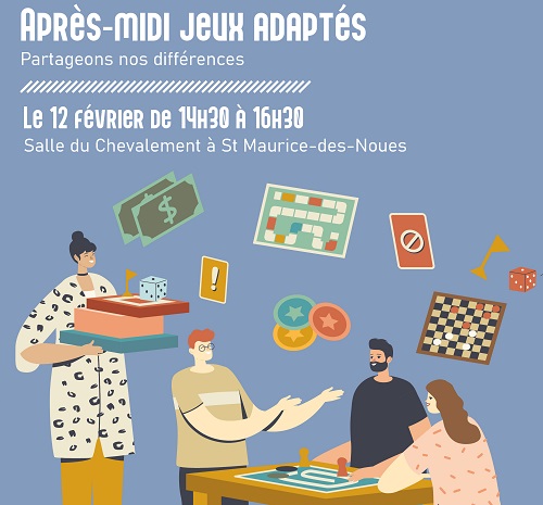 Partageons nos différences : séances de jeux de société adaptés, salle du Chevalement à St Maurice-des-Noues Partageons nos différences : séances de jeux de société adaptés, salle du Chevalement à St Maurice-des-Noues